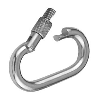 Карабин овальный с предохранительным стопором – раскрывается наружу. Применяется при такелажных работах для присоединения к тросам, цепям или канатам. Карабины производятся из нержавеющей стали А4.