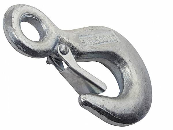 Нержавеющий подъемный самозакрывающийся крюк. Открывается только при нажатии на блокирующий рычаг. В крюк вмонтированы соединительный штифт и предохранительная пружина. Крюк применяется в различных грузоподъёмных устройствах.