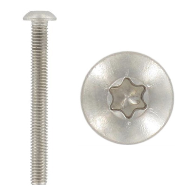 Винт ISO 7380 TORX с полукруглой головкой, шестирадиусным шлицем и полной резьбой, А2 и А4 может устанавливаться в отверстия с предварительно нарезанной резьбой для соединения различных деталей. Применяется в комплекте с гайками и шайбами соответствующего диаметра. По стандарту, высокопрочный винт имеет диаметр резьбы от М2 до М12, а длина его стержня составляет от 4 до 80 мм. Для установки таких изделий использоваться Г-образные шестигранные ключи или шуруповерты с соответствующей насадкой TORX. Одно из преимущества такого крепежа – защита от несанкционированного доступа, поскольку шестигранный ключ встречается далеко не во всех наборах инструментов.Винт ISO 7380 TORX с полукруглой головкой, шестирадиусным шлицем и полной резьбой изготавливается из нержавеющих сталей типа А2 и А4. Благодаря присутствию хрома и никеля в составе, они обладают устойчивостью к коррозии и не разрушаются под воздействием агрессивной среды, например, кислоты или щелочи.